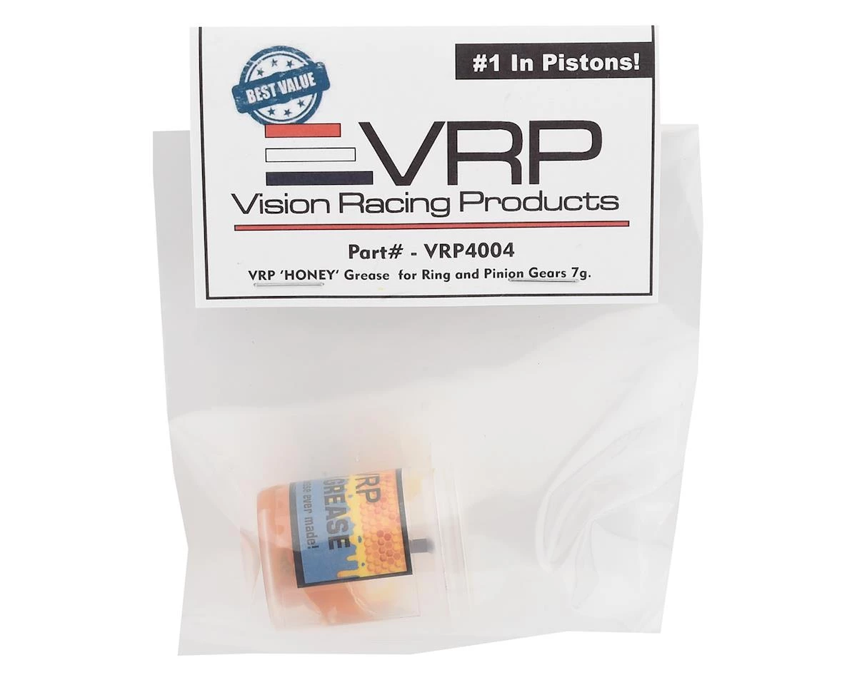 VRP Gear/Pinion Gear Honey Grease is the perfect grease for your ring and pinion gears. Its super sticky, but after a run or two, frees up and provides greater life span of your gears. Comes in a pop top container for storage, as well as a handy stir/applicator stick.