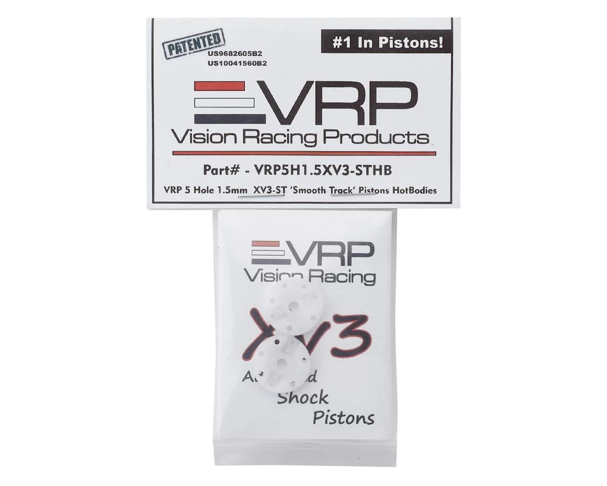 This is a VRP XV3-ST ‘Smooth Track’ Piston with five 1.5mm holes, intended for use with 1/8 Hot Bodies Kits. This piston design features a slightly slower rebound stroke matched with an improved ‘connected’ compression stroke, resulting in better handling on smooth surfaces. The ‘ST’ piston was designed specifically for tracks that don’t break up and remain smooth, and range from low to high grip. Featuring VRP’s Patented Design, the updated ‘ST’ piston is simple and easy to use. It is “plug and play”, simply install and go! The VRP XV3-ST line of pistons are available for all the popular 1/8th vehicles in 5, 6, and 8 holes.
