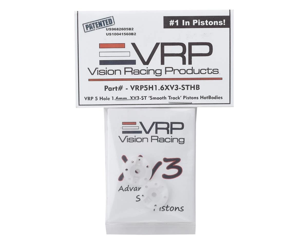 This is a VRP XV3-ST ‘Smooth Track’ Piston with five 1.6mm holes, intended for use with 1/8 Hot Bodies Kits. This piston design features a slightly slower rebound stroke matched with an improved ‘connected’ compression stroke, resulting in better handling on smooth surfaces. The ‘ST’ piston was designed specifically for tracks that don’t break up and remain smooth, and range from low to high grip. Featuring VRP’s Patented Design, the updated ‘ST’ piston is simple and easy to use. It is “plug and play”, simply install and go! The VRP XV3-ST line of pistons are available for all the popular 1/8th vehicles in 5, 6, and 8 holes.