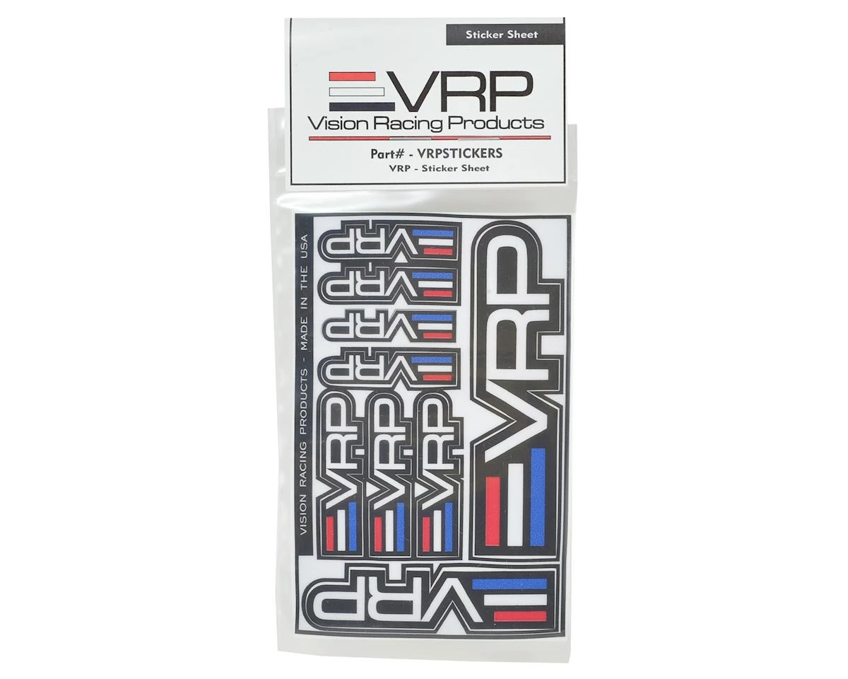 This is a VRP Sticker Sheet. It features the VRP Logo in 4 different sizes: 1.5″, 2″, 3″ and 4″ in length.ย