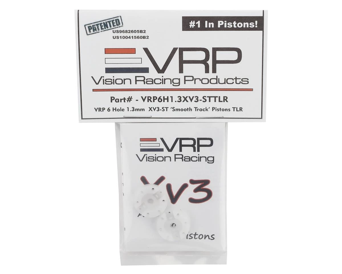 This is a VRP set of 6 Hole, 1.3mm flat XV3-ST ‘Smooth Track’ Pistons intended for use with 1/8 TLR Kits. The pistons come with the Transition Valves (not installed). The Rebound booster hole has been precision drilled to the exact size testing found to be the best ‘all around’ setting. This yields excellent results that are proven on a variety of track surfaces. The ‘XV3’ has less material removed from around the center which equals a much more solid piston.